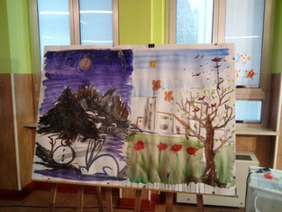 Un grande libro in scena, pagine bianche ancora tutte da illustrare...Vivaldi e le sue "Quattro Stagioni" hanno accompagnato i nostri bambini alla scoperta delle pittura dal vivo con l'acquerello. Grazie per all'artista Cristina Calì per questa splendida immersione di musica e colori.